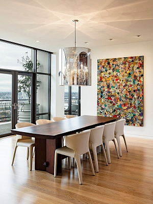 Обеденный стол был специально разработан совместно с Bo Hagood и Made Inc. Картина выполнена по заказу художника в Палм-Спрингс (Palm Springs), которая называется Downs.