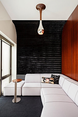 Столы и стена из искусственного меха была также работой совместного сотрудничества между Maven Interiors и Made Inc.