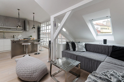 Современная мансарда в палитре серого в Праге