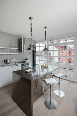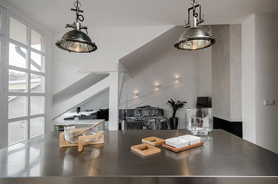 Эти шикарные апартаменты на верхних этажах в Ostrovského (Прага, Чешская Республика) обладают интерьером с мужским характером. Дизайн разработан студией OOOOX. Мансарда оформлена в индустриальном стиле с использованием различных оттенков серого цвета, который отражает современность и изысканность вкуса.