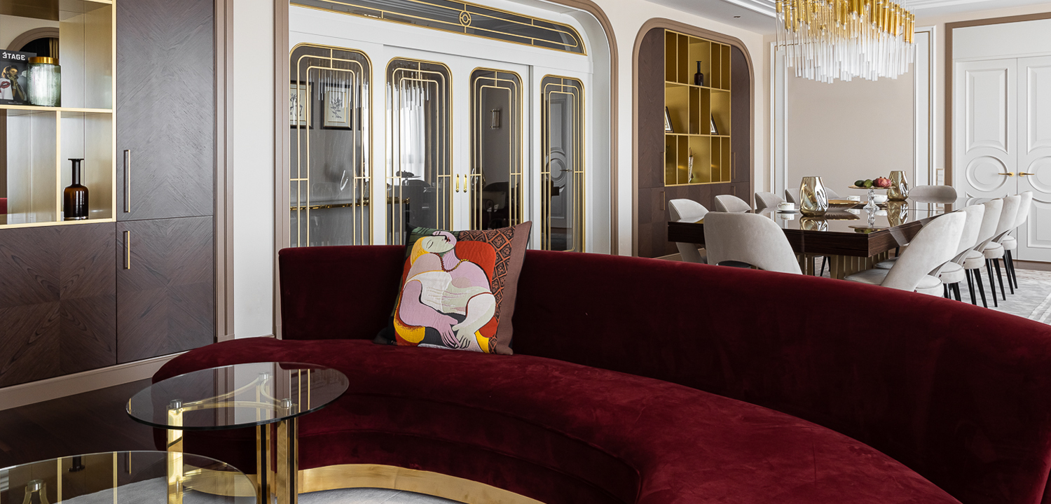 Еще одно из пожеланий заказчиков – использование благородных природных материалов. Так в интерьерах появились предметы и отделка со шпоном из экзотических пород дерева, дополненные латунью. Айдана также использовала обои, фрески и декор с природными мотивами. В этой квартире много предметов искусства казахстанских мастеров.
